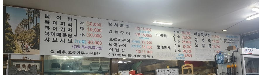 메뉴 소개(항구식당)