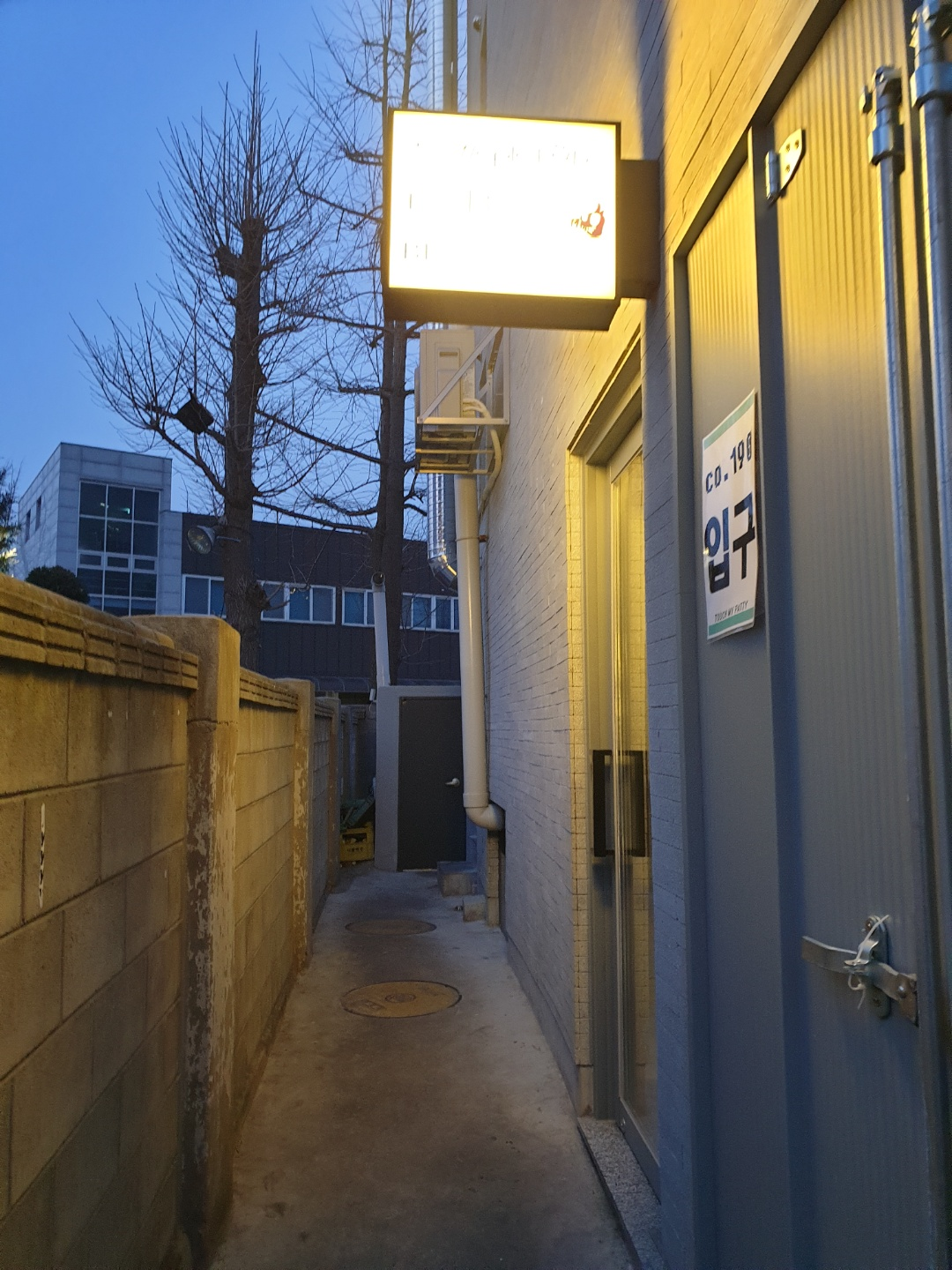 매장 앞 사진인데요. 주위가 어두워서 어떻게 찾지 고민했는데 조명이 아주ㅋㅋㅋ 특이해서 금방 찾았습니다.