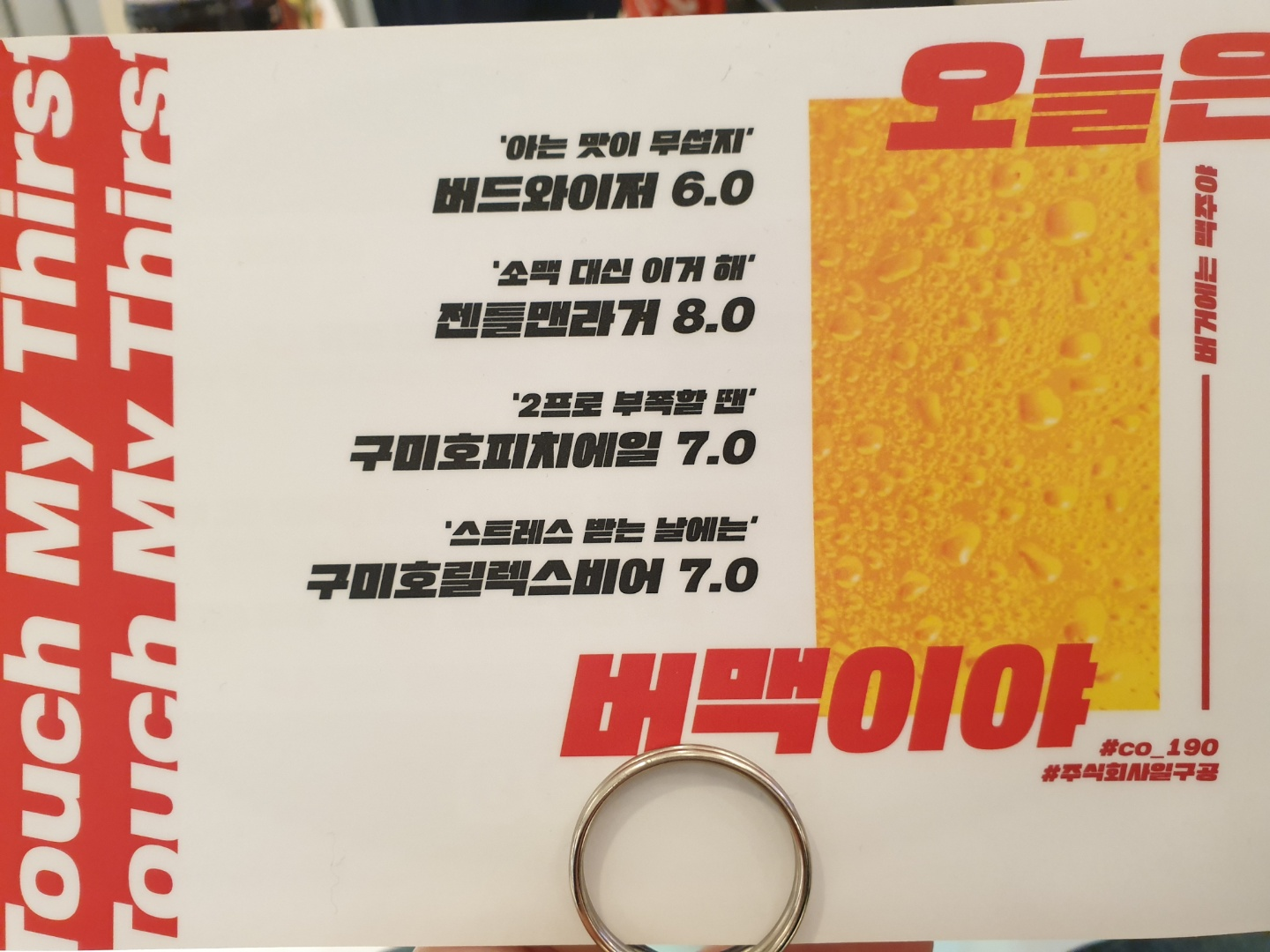 저는 다행히도 전부 들어가 있어서 맥주를 못 먹고 탄산음료를 먹었습니다.